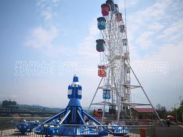 湖南懷化濱江公園大型摩天輪整園案例:摩天輪、海盜船、自控飛機(jī)、軌道火車、轉(zhuǎn)馬: