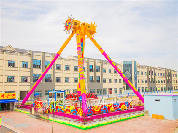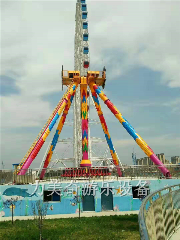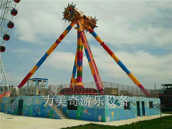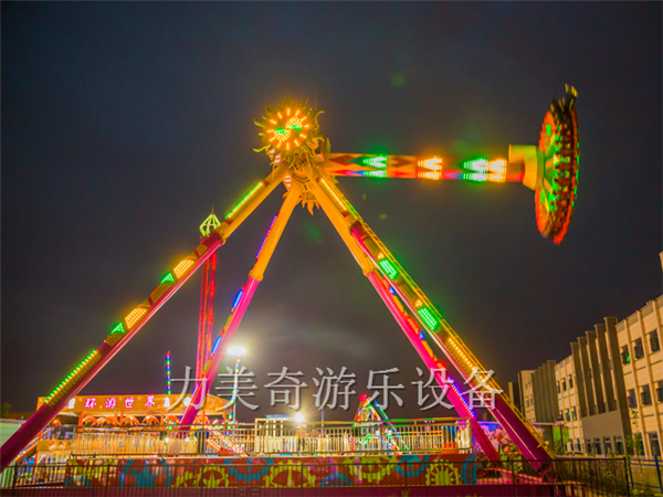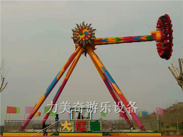 大擺錘又叫流星錘、大擺錘,是一種旋轉(zhuǎn)類的大型游樂設(shè)備,其運動原理是由時鐘鐘擺引發(fā)而來,運動軌跡也是鐘擺形式,大臂下面帶有一個圓盤,在大臂做鐘擺擺動時,大臂下面的圓盤同時在做旋轉(zhuǎn)運動,游客乘坐在旋轉(zhuǎn)的大擺錘上往復(fù)擺蕩,失重感令人目眩神迷;游客往往情不自禁的發(fā)出驚呼與歡笑,極大的提高了整個游樂場的歡樂氣氛,使許多游客留連忘返,遲遲不愿離去。