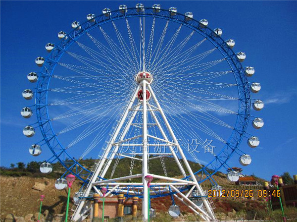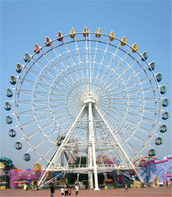 產(chǎn)品介紹          力美奇游樂生產(chǎn)的大型摩天輪,是一種大型轉(zhuǎn)輪狀的機(jī)械建筑設(shè)施,我們很常見到摩天輪存在的場合是游樂場(或主題公園),作為一種公園大型游樂設(shè)備,與云霄飛車、旋轉(zhuǎn)木馬合稱是“游樂園三寶”,摩天輪也經(jīng)常獨(dú)自存在于其他的場合,通常被用來作為會活動的觀景臺使用,并成為城市地標(biāo)建筑。