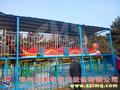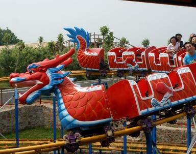滑行龍”游藝機(jī)以龍尾造型,整個(gè)列車由前后兩個(gè)傳動(dòng)部驅(qū)動(dòng),沿著兩個(gè)螺旋形軌道行駛,時(shí)而盤旋而上,時(shí)而急速下降,既有娛樂性、趣味性,又具有刺激性,老幼皆宜。乘坐過(guò)程中給游客帶來(lái)新奇、快樂的感覺。典雅的龍?jiān)煨秃途哂忻褡逄厣难b飾,更增添游人的興致,是一種深受群眾喜愛的游藝機(jī)。