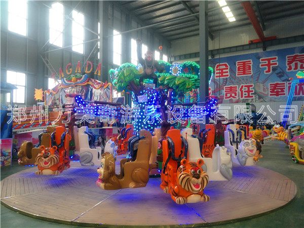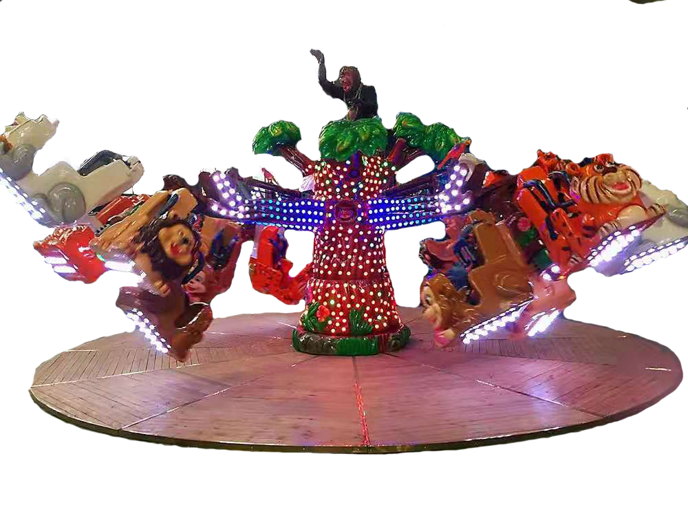 森林探險(xiǎn)2代的吊臂在旋轉(zhuǎn)上升的同時(shí),我們乘坐的座艙也被探險(xiǎn)的趣味驅(qū)動(dòng)著上下翻轉(zhuǎn),以難以置信的速度和雙重的旋轉(zhuǎn)產(chǎn)生能量風(fēng)暴的效果!旋轉(zhuǎn)時(shí)的超強(qiáng)加速度,以及豎直和倒置的旋轉(zhuǎn)方式,給您帶來(lái)多重運(yùn)動(dòng)方式的刺激體驗(yàn)。森林探險(xiǎn)2代是由液壓結(jié)合電機(jī)驅(qū)動(dòng),規(guī)格可分為4臂。作為一套新型的大型游樂(lè)設(shè)備,深受游客的喜愛(ài)。