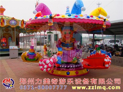 小丑飛椅在同類產(chǎn)品中,具有噪聲小和占地面積小的優(yōu)點。不但具有性能優(yōu)異,可靠等特點,而且還將以新穎美觀的造型、華麗迷人的彩燈裝飾,逼真刺激的音響效果,吸引眾多的游客。當乘客乘坐在正在運行的吊椅上時,伴隨逼真刺激的音樂效果,會有一種空中飛人的感覺,是公園、游樂園、青少年宮等單位一項很不錯游樂設施投資選擇。
