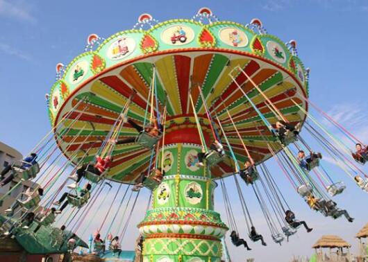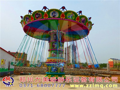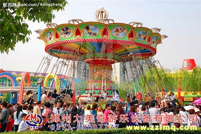 游樂(lè)設(shè)備旋轉(zhuǎn)飛椅是一種新穎的飛行塔類(lèi)游樂(lè)設(shè)施,豪華的外觀裝飾,有趣的運(yùn)動(dòng)形式。游客乘坐在垂掛的吊椅上,隨轉(zhuǎn)盤(pán)的運(yùn)轉(zhuǎn)徐徐升起,仿佛翱翔于天際,又如置身于波蕩起伏的大海中,其樂(lè)無(wú)窮。游客座椅在離心力的作用下繞立柱起伏飛旋,好似銀燕在晴空中回旋飛舞,此起彼伏,上下飄飛。他集娛樂(lè)性、趣味性,驚險(xiǎn)和刺激性于一體。